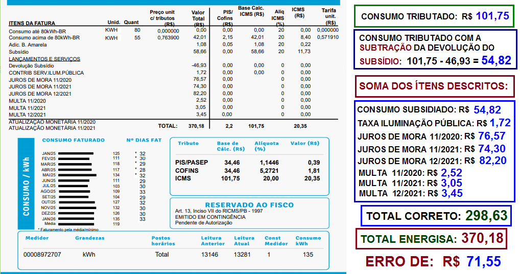 VEJA COMO A CONTABILIDADE DAS CONTAS DA ENERGISA, PODE TER VALORES INVISÍVEIS, AUMENTADO O TOTAL DA CONTA DE ENERGIA ELÉTRICA.